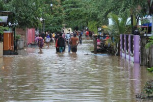 Mamuju, Info Benua — Bencana banjir yang terjadi di hampir sebagian besar wilyah dalam Kota Mamuju (kamis, 22 Maret 2018) murni disebabkan adanya bencana alam, dimana debit air yang begitu tinggi dikarenakan hujan deras yang mengguyur kota mamuju sejak dinihari bertemu dengan pasang air laut secara bersamaan, sehingga menyebabkan volume air di daratan tel ah sejajar dengan volume air laut, diperparah air sungai yang juga ikut meluap, hal ini disampaikan Bupati Mamuju H.Habsi Wahid saat melakukan pemantauan beberapa titik banjir terparah diantaranya di kelurahan karema, binanga, rimuku dan kelurahan simboro.