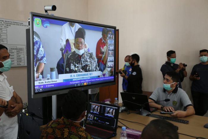 Sangatta, Info Benua – Untuk membahas langkah-langkah antisipasi pencegahan dan penyebaran COVID-19, Mendagri RI Gelar Rapat Melalui Video Conference (VC), Bupati Kutai Timur H Ismunandar pun ikut terlibat melaui video itu di Ruang video conference, Kantor Dinas Kominfo-Perstik Kutim, Kamis.