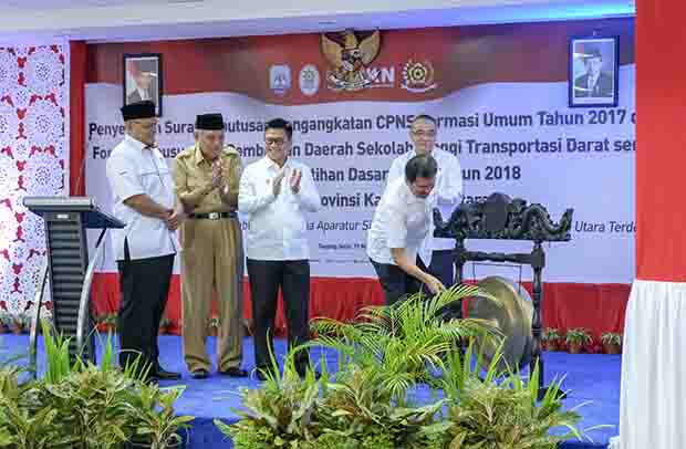 “Kegiatan Latsar merupakan sebuah bentuk komitmen pemerintah dalam meningkatkan kompetensi ASN, dan membentuk ASN yang profesional, berintegritas, serta mampu memberikan pelayanan bagi masyarakat sebagai penyelenggara pelayanan,” ungkap Gubernur di sela acara Penyerahan Surat Keputusan (SK) Pengangkatan CPNS 2018 di Gedung Gabungan Dinas (Gadis) Pemprov Kaltara, Senin (19/3).
